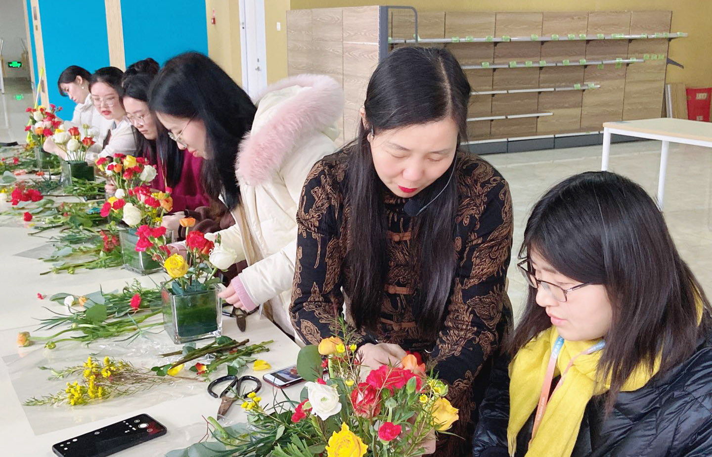 看著自己親手完成的作品,感受著從手中綻放的清香與浪漫,大家紛紛合影留念,記錄自己創(chuàng)造的獨一無二的美好。