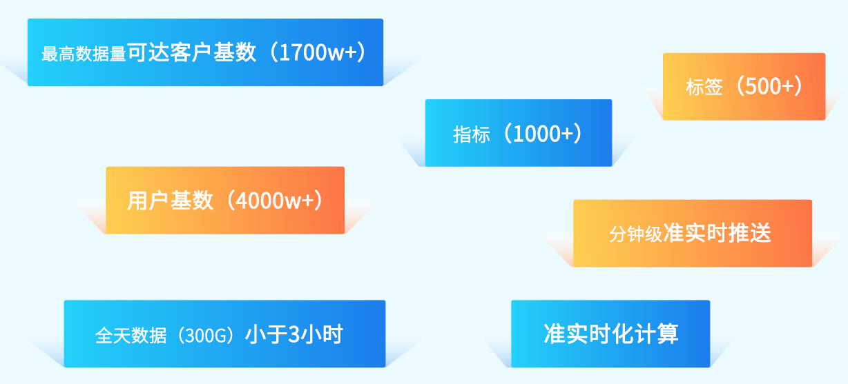 運用最新的大數(shù)據(jù)框架和技術,對接證券公司數(shù)據(jù)中心或其他業(yè)務系統(tǒng)數(shù)據(jù)(CRM系統(tǒng)、交易系統(tǒng)、用戶行為分析系統(tǒng)等),實現(xiàn)任意實體自定義并進行打標簽處理,實現(xiàn)5K業(yè)務場景的全方面系統(tǒng)對接及數(shù)據(jù)服務,目前積累的常用證券業(yè)標簽庫1500+。