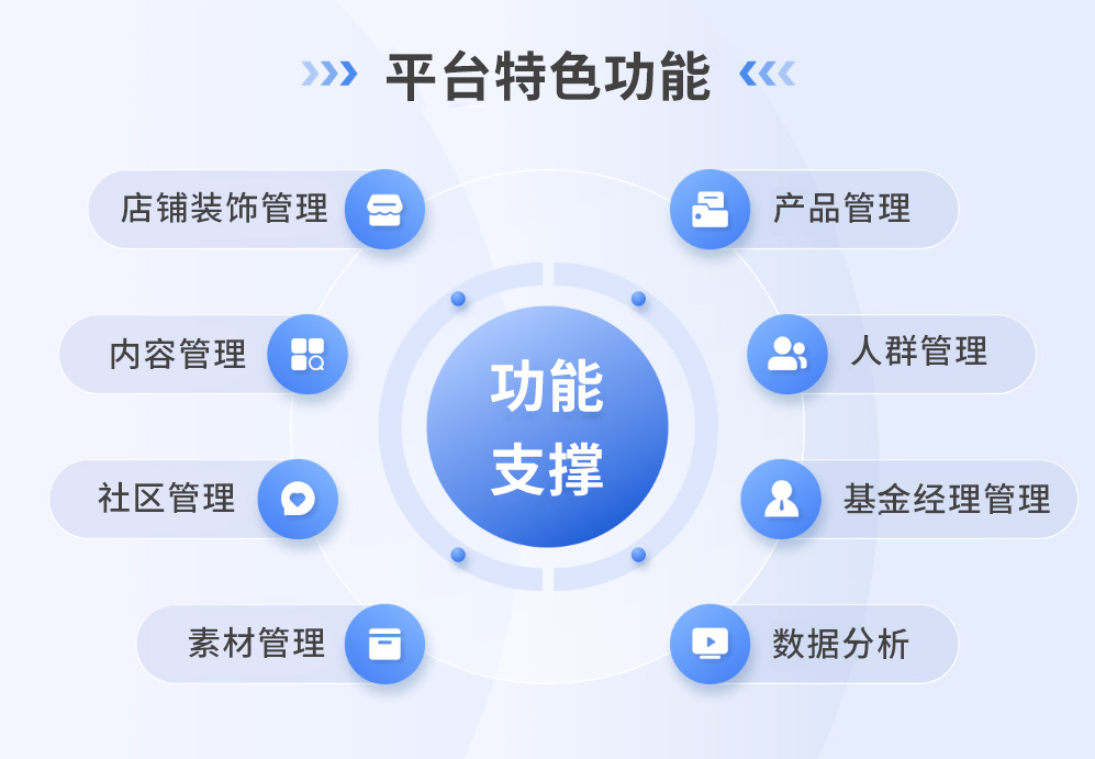 凌志軟件為財(cái)富號(hào)/財(cái)富社區(qū)的建設(shè)提供系統(tǒng)解決方案,主要覆蓋用戶前端、后臺(tái)管理和基金公司前端的設(shè)計(jì)三個(gè)大模塊,平臺(tái)主要特色功能如下: