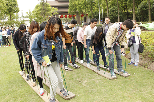 為了讓到場的所有員工及其家人玩得開心,工作人員準(zhǔn)備了多種家庭競技和團隊挑戰(zhàn)項目?!把蚪乔蚋傎悺?、“合力運氣球”、“無敵風(fēng)火輪”、“快樂DIY”、“城堡滑梯”等親子游戲趣味十足,逗得小朋友們樂開了懷。在團隊挑戰(zhàn)區(qū),“巨人腳步”、“鼓舞人心”、“無間道”、“龍舟競技”等項目參與者眾多,場面熱鬧,“真人CS”更是讓大家不惜冒雨排著長隊等候。